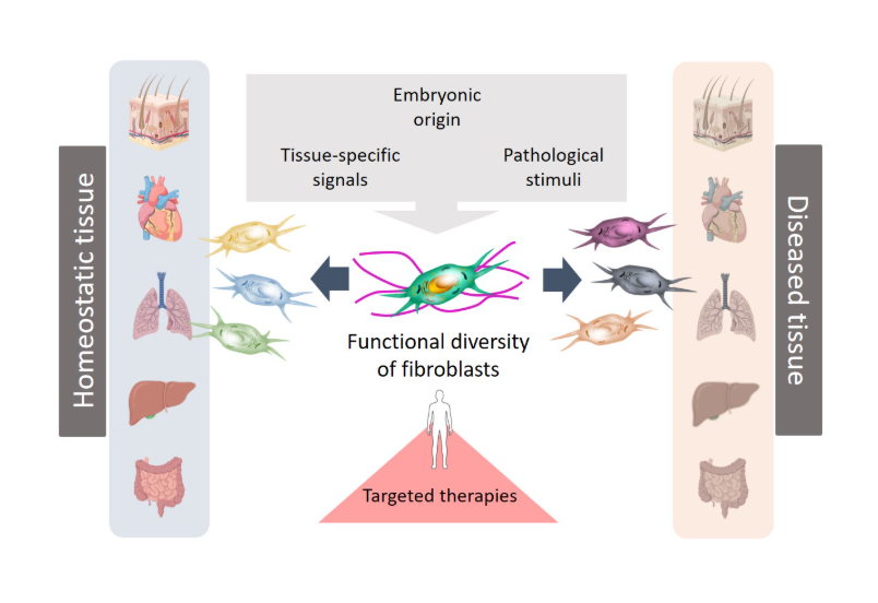 Fibroblasts are specialised connective tissue cells that play a key role in wound healing and tissue regeneration. The recent scientific publication from the University of Leipzig Medical Center shows that fibroblasts respond differently depending on the organ and disease context. Their functions are shaped by their embryonic origin, tissue-specific signals, and pathological stimuli. These specialised cells are not only involved in tissue repair and remodelling, but also influence the immune system and the development of diseases such as cancer, fibrosis and chronic inflammatory conditions.