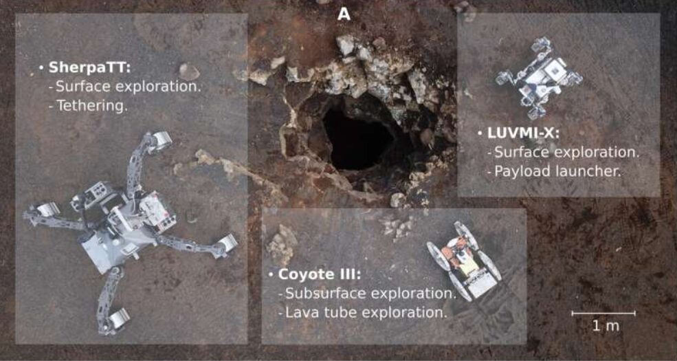 Human exploration of these tubes is risky, expensive and currently unfeasible. Robots are a safer, more cost-effective option. “A heterogeneous cooperative robot team is a promising approach to address the access and exploration of extraterrestrial lava caves,” wrote the researchers in a paper published in Science Robotics that describes their work on Lanzarote.