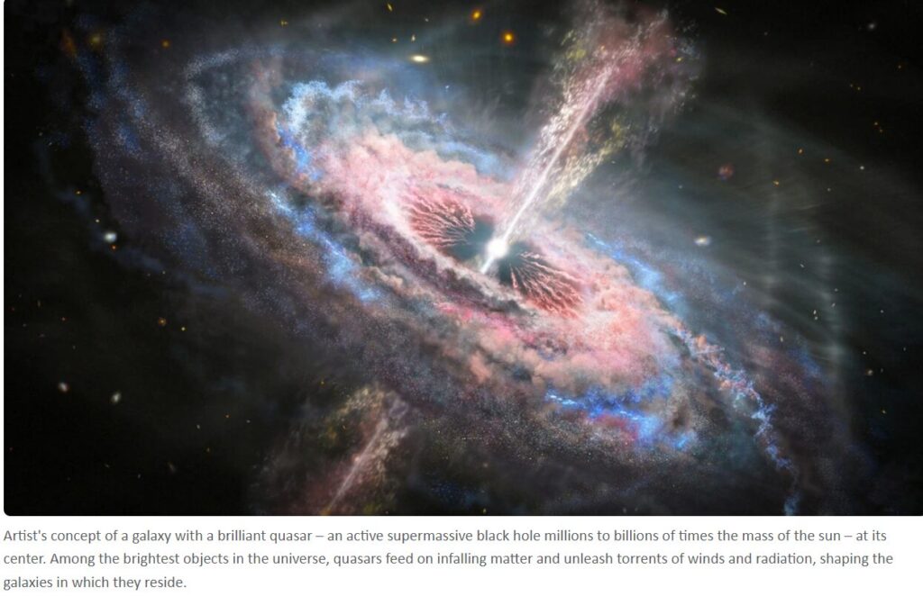 Giant black holes may be secretly controlling how entire clusters of galaxies grow. A blazing supermassive black hole can influence far more than its own galaxy. Scientists found that quasars emit radiation strong enough to shut down star formation in nearby galaxies millions of light-years away. This could explain why some galaxies near early quasars appear faint or missing. The finding suggests galaxies grow and evolve together, not in isolation.