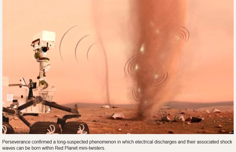 Perseverance confirmed a long-suspected phenomenon in which electrical discharges and their associated shock waves can be born within Red Planet mini-twisters.