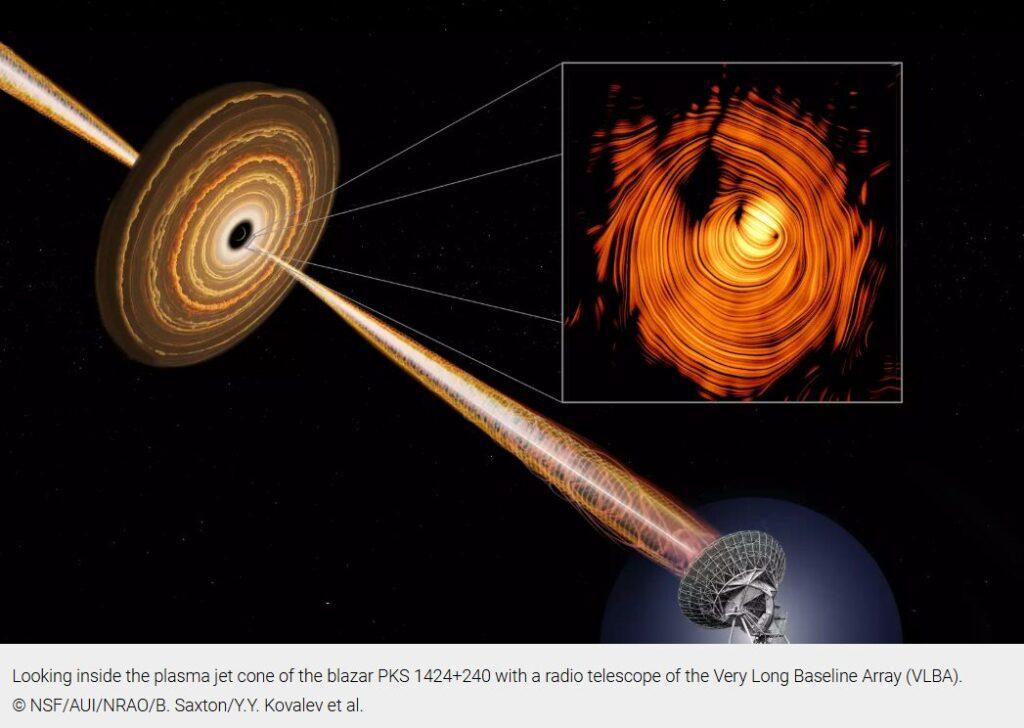The researchers made a discovery that will help in understanding how a seemingly slow-moving blazar, known as PKS 1424+240, could be one of the brightest sources of high-energy gamma rays and cosmic neutrinos ever observed. The work is published in the journal Astronomy & Astrophysics.
