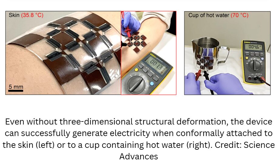 Seoul National University College of Engineering has announced that a research team led by Prof. Jeonghun Kwak of the Department of Electrical and Computer Engineering, with co-first authors Dr. Juhyung Park and Dr. Sun Hong Kim, has developed a flexible and thin “pseudo-transverse thermoelectric generator” capable of producing electricity from body heat. The research findings appear in Science Advances.